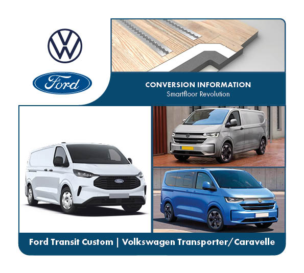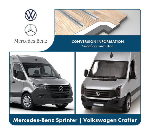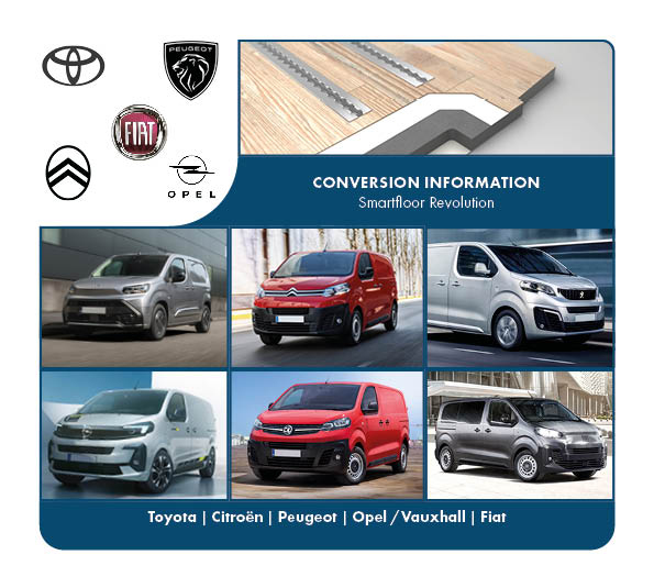 De Smartfloor Revolution is M1- gecertificeerd voor de volgende voertuigen en wordt compleet geassembleerd en beplakt met vloerzeil. Er is keuze uit diverse soorten vloerzeil: